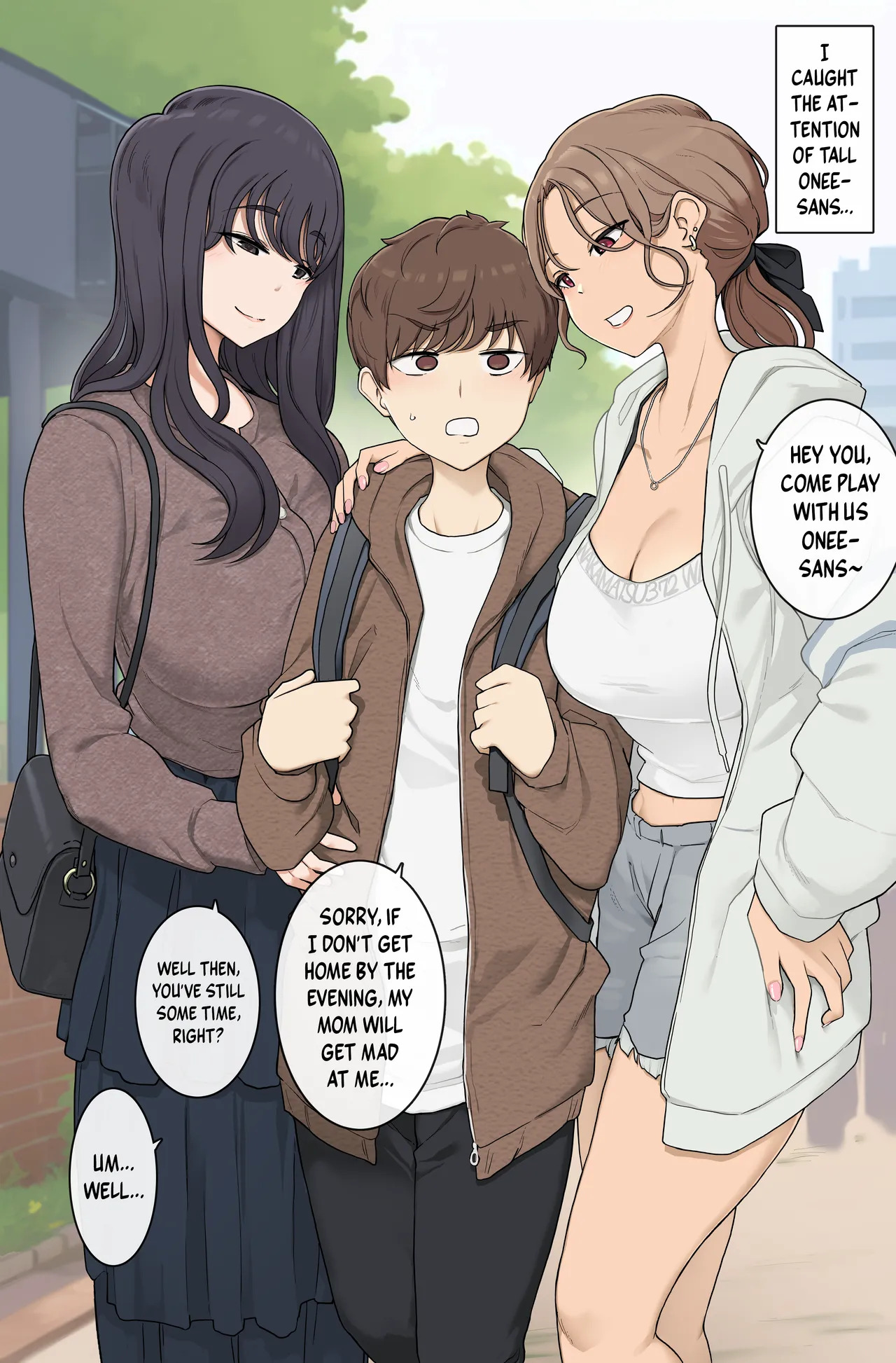 Megutai Choushin Onee-san-tachi ni Ryousoku kara Press Sarete Nigerarenai Sex | Sex Where I’m Sandwiched Between Tall, Busty Onee-sans and Unable to Escape